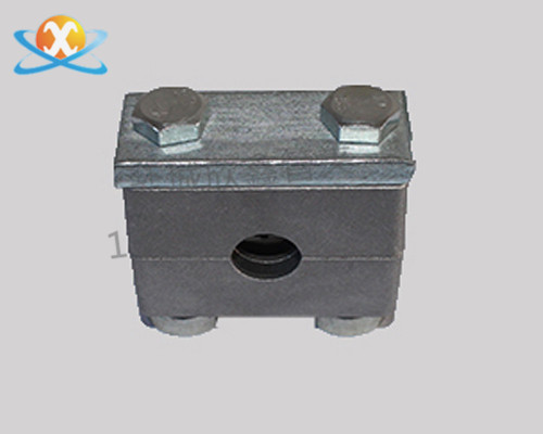 3、疊起裝配,導(dǎo)軌可焊在基礎(chǔ)上,或用螺釘固定,先裝上下半個管夾身,放上需固定的管子再放上上半個管夾身,用螺釘固定,通過防松蓋板防止它轉(zhuǎn)動。然后安裝第二個管夾,方法同上。
